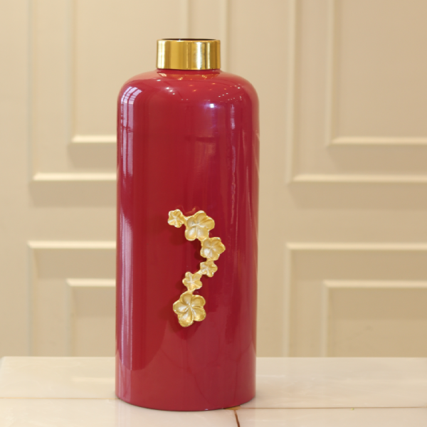Aurora Wine Tall Slender Luxury Metal Vase : Gold Floral
