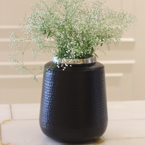 Elevate your interior styling with our Black & Nickel Metal Flower Vases, designed for modern elegance and timeless charm. Featuring a sleek matte black body with a contrasting metallic rim, these designer vases blend sophistication with bold design — perfect for contemporary, minimalist, or luxury-themed spaces.