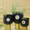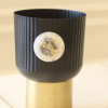 Description: Elevate your interior décor with this contemporary planter set that perfectly blends modern design and timeless elegance. Crafted with a matte black ribbed finish, each planter features a sleek nickel base and a decorative gold foil medallion—adding a luxurious focal point to any room.