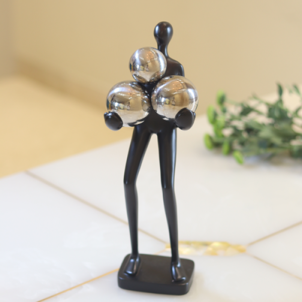 • Design: Abstract human form holding 3 reflective silver spheres