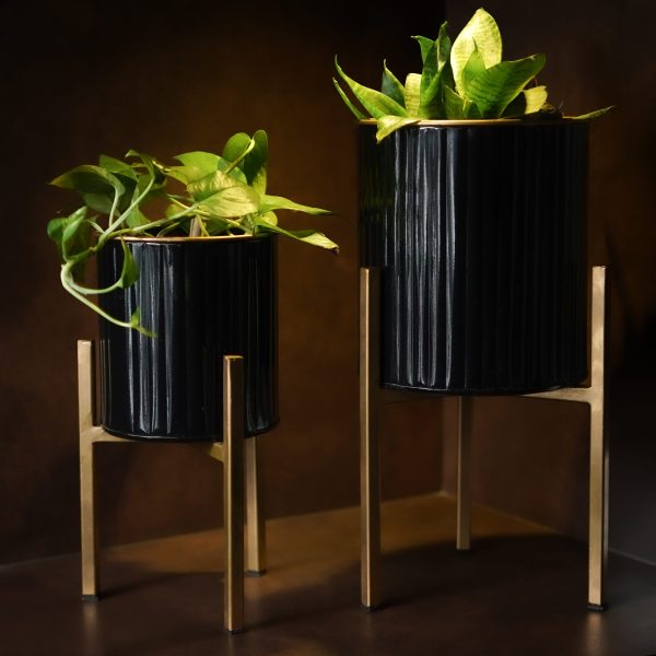 Designed for urban living, this matte black metallic planter set brings elegance to compact corners and indoor greens. Its tall, slender design adds vertical interest, while the deep black tone complements everything from succulents to statement palms.
