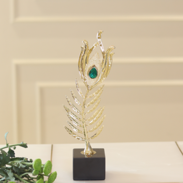 The Golden Peacock Feather With Green Gem – Krishnas Favourite